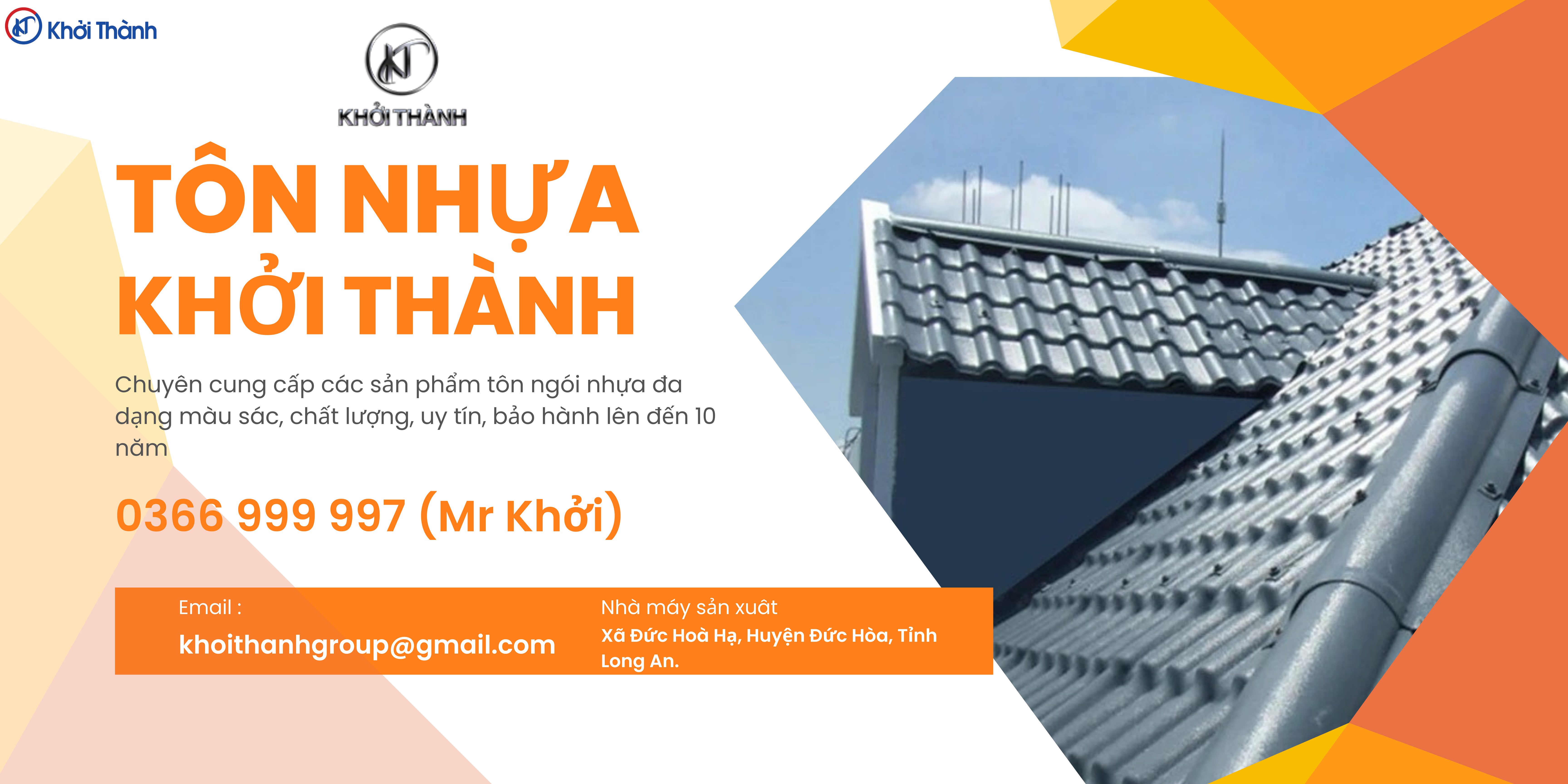 Tôn Nhựa Khởi Thành là một tổ chức chuyên về sản xuất và cung cấp các sản phẩm tôn nhựa, ngói nhựa, phụ kiện,..Với nhiều năm kinh nghiệm trong ngành công nghiệp xây dựng, công ty đã xây dựng được danh tiếng vững mạnh trong việc cung cấp các sản phẩm tôn nhựa chất lượng cao và dịch vụ hỗ trợ kỹ thuật xuất sắc.